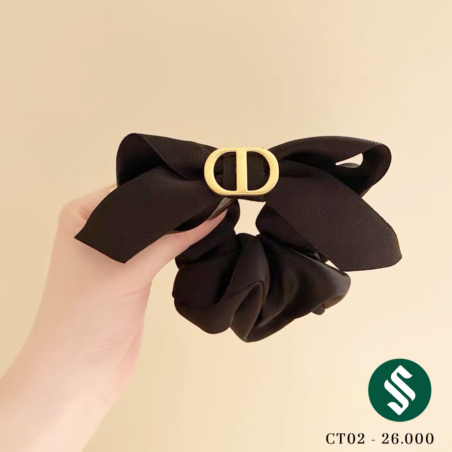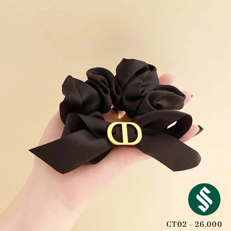 Cột tóc lụa đen tag đồng, chất vải mềm mại sờ vào là thích ngay. Tag đồng thương hiệu vô cùng nổi bật.