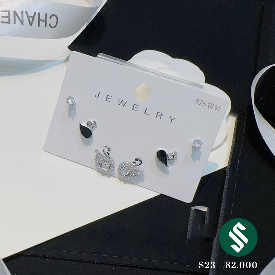Set 03 đôi khuyên tai thiên nga bạc 925
