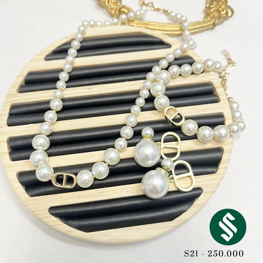 Set CD bao gồm khuyên tai, dây chuyền và lắc tay cực xinh, mua cả set với giá cực hời. Set hạt ngọc sáng bóng, phù hợp mọi trang phục không bao giờ lỗi thời.