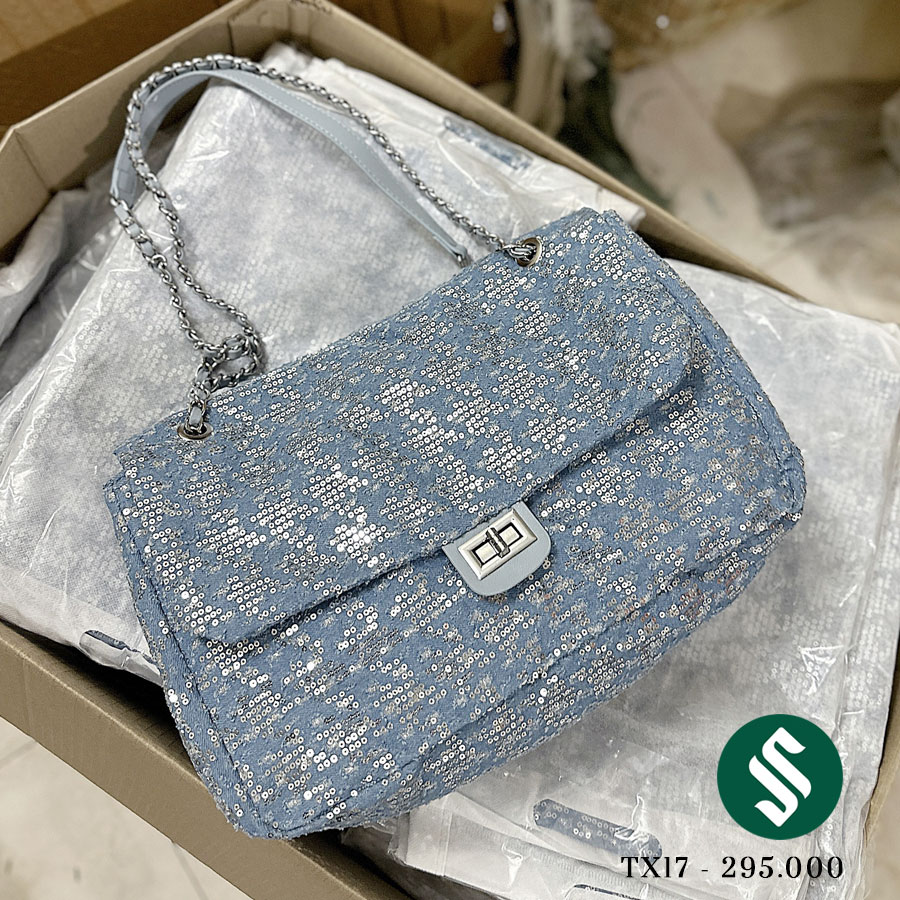 Những mẫu túi bling bling bên ngoài nhìn sẽ thêm mê đắm, lên ảnh không thể hiện được hết vẻ đẹp của chiếc túi xanh hot nhất năm nay. Túi có thể đeo chéo hoặc đeo vai