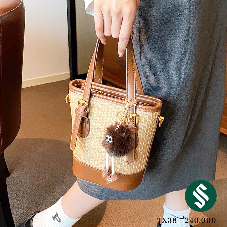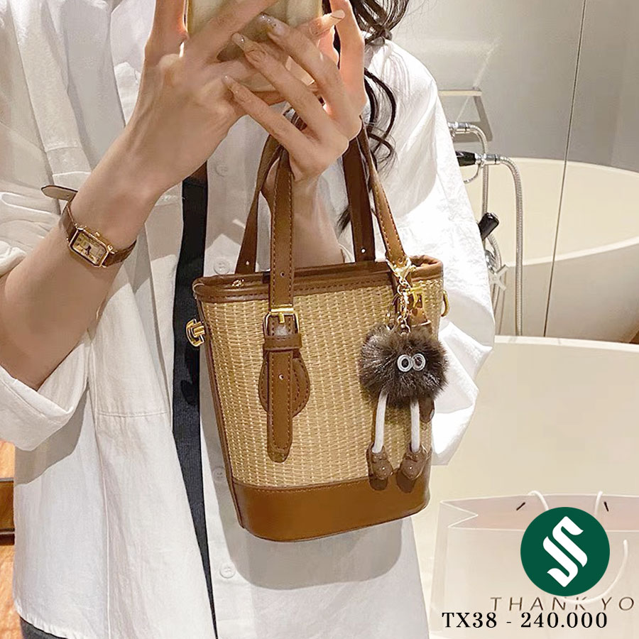 Túi cói đế da lèm móc treo gấu xinh xắn, hàng đẹp nét căng từng đường kim mũi chỉ đến chất da chất luôn không phải bàn. Túi có 2 màu nâu và trắng.