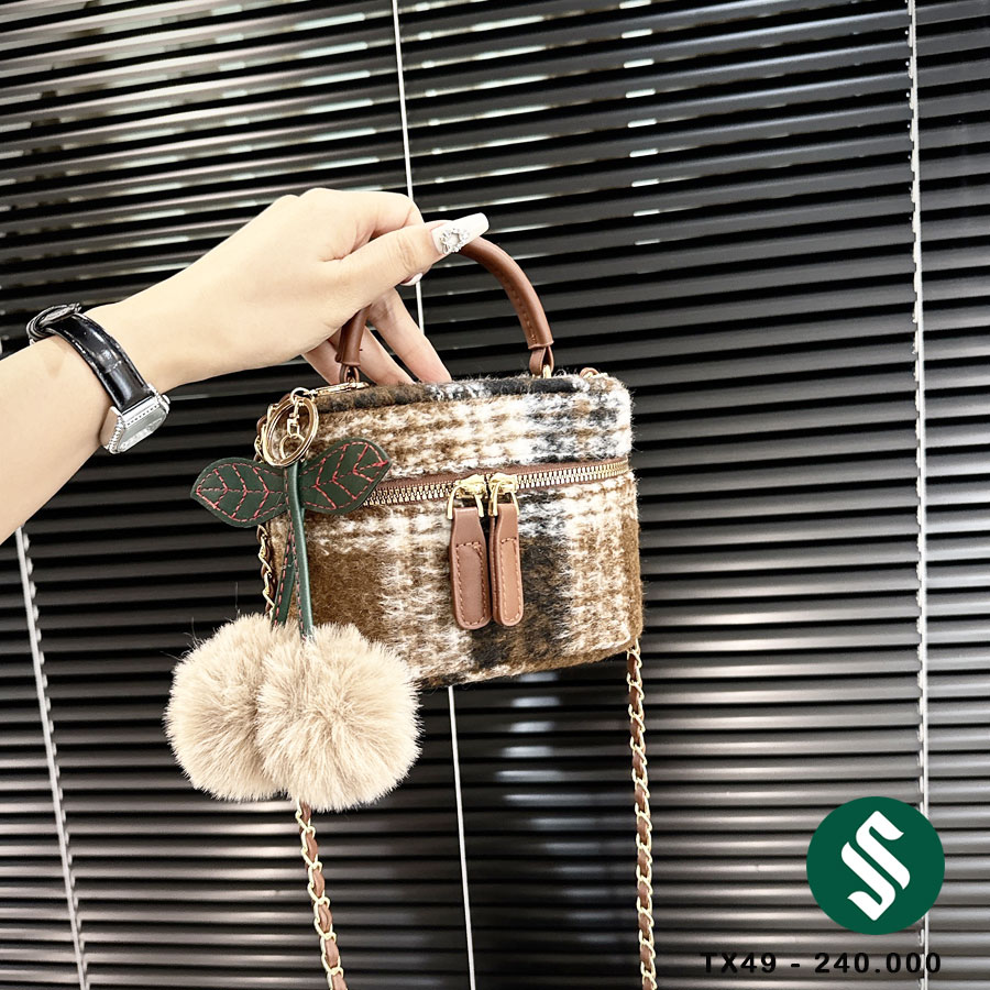 Màu nâu tây sang đẹp dã man, lông rất mịn sờ vào là thích ngay. Size 19 đựng vừa điện thoại, son phấn, thẻ.